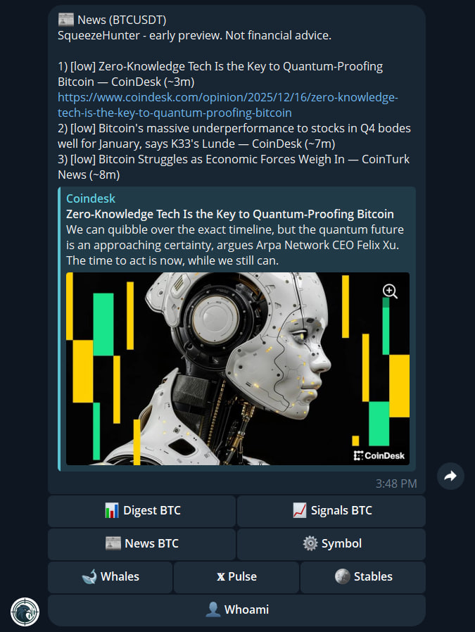 Optional Telegram delivery for alerts and updates (Pro/VIP).